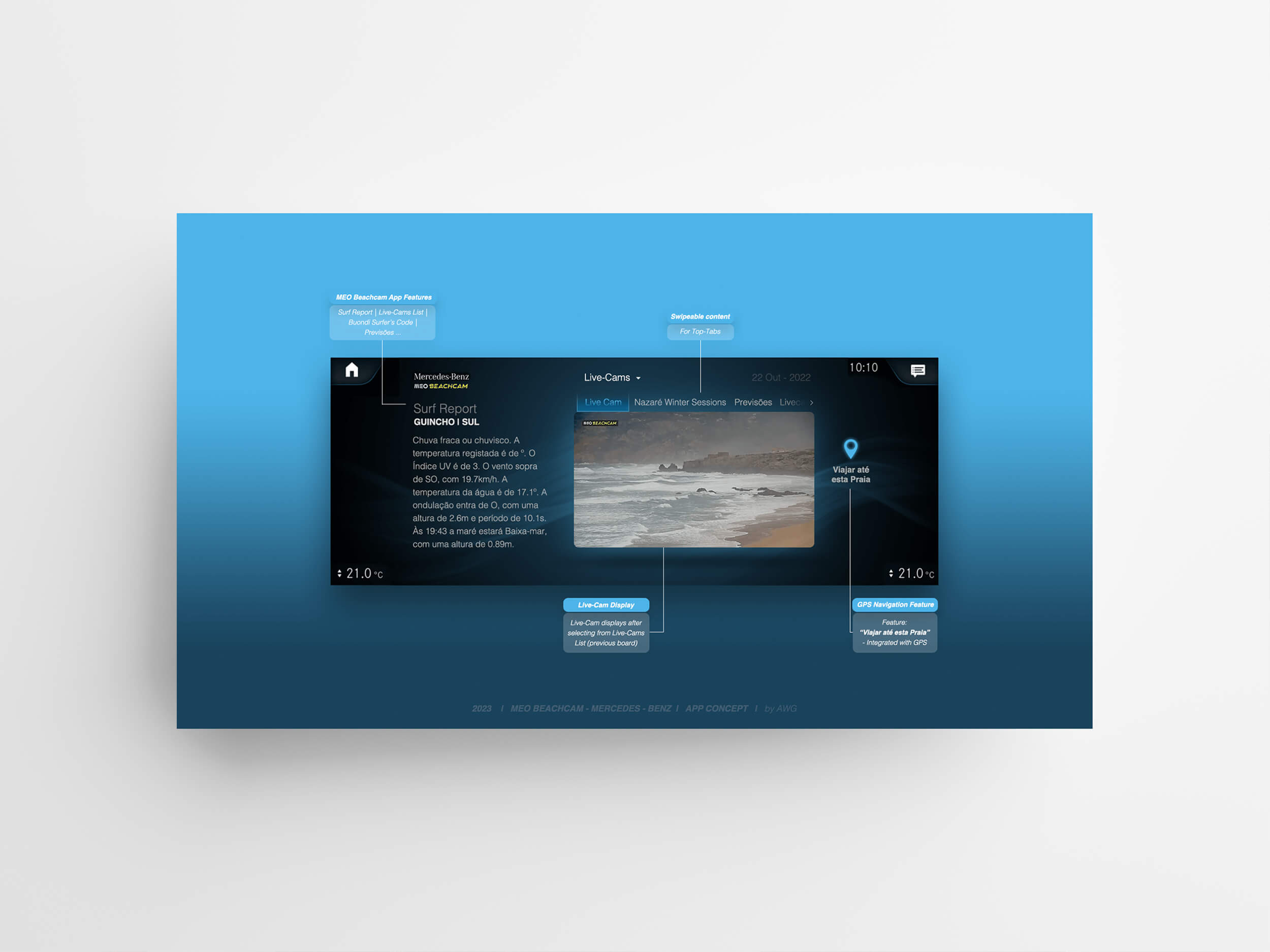 I designed a concept for an exclusive partnership between renowned companies in Portugal, such as Meo Beachcam and Mercedes-Benz iO.